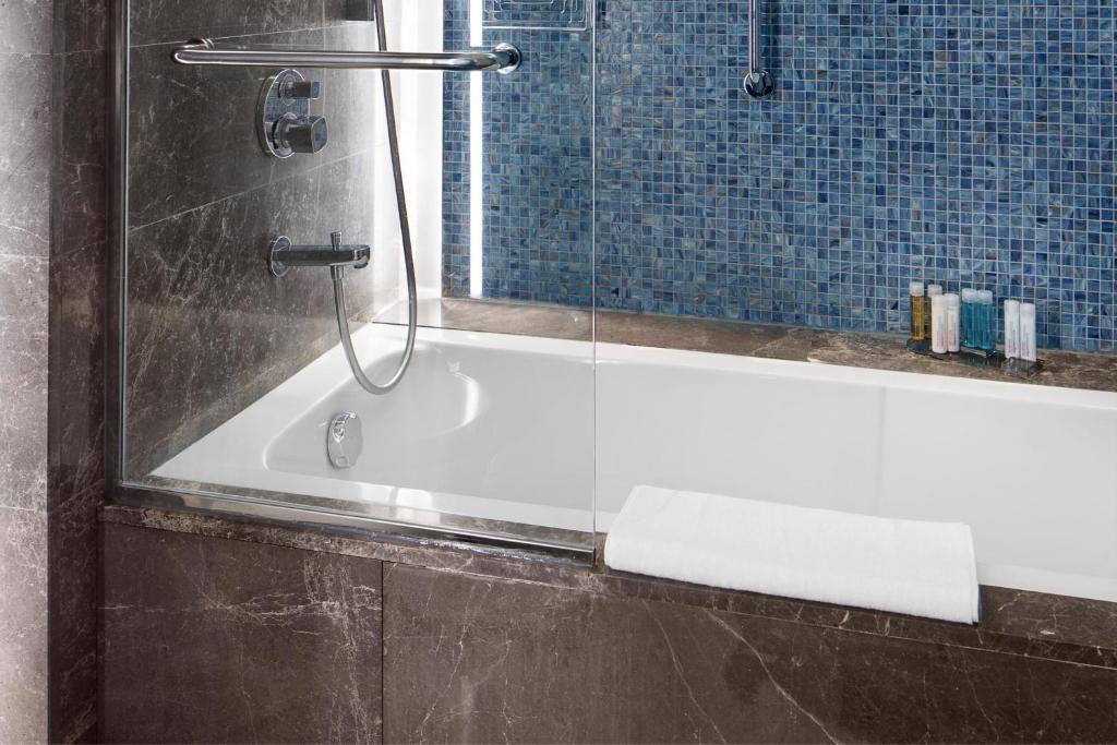 Offering an indoor pool, sauna, Turkish bath and a fitness center, Istanbul Marriott Hotel Sisli is located in one of Istanbul's commerce centers. WiFi access is available. Air-conditioned rooms in Istanbul Marriott Hotel Sisli provide a mini-bar, ironing facilities, safe box, desk and a 42" flat-screen satellite TV with pay-per-view channels. Featuring a hairdryer, private bathrooms also come with towels. Some rooms also have a sea view. At Istanbul Marriott Hotel Sisli you will find a spa and wellness center, à la carte restaurant and buffet restaurant. Other facilities offered include a shared lounge, a tour desk and luggage storage. Cevahir Shopping Mall is just 1476 feet and Profilo Shopping Center is 0.9 mi from the property. Adem & Havva Hair Transplantation Hospital is a 2-minute walk from the property. Sisli Metro Station is just 1148 feet away from the property, which provides easy access to other parts of the city. Ataturk Airport is 14 mi away while Istanbul Airport is 30 mi from Istanbul Marriott Hotel Sisli.