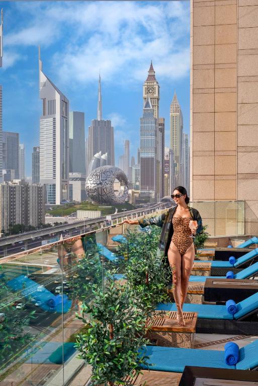 يقع فيرمونت دبي الشهير في قلب دبي وعلى بُعد 10 دقائق فقط بالسيارة أو المترو من دبي مول وبرج خليفة والنوافير ويتميز بموقع مناسب على طريق الشيخ زايد مقابل مركز دبي التجاري العالمي، كما يتميز بسبا فاخر ومسابح خارجية و13 مكان للترفيه وتناول الطعام، وتتوفر خدمة الواي فاي مجاناً في جميع المناطق. تجمع جميع الغرف والأجنحة التي يبلغ عددها 394 في فيرمونت دبي ما بين الأناقة الكلاسيكية مع الديكور ووسائل الراحة العصرية، كما تتميز جميع الغرف بنوافذ تمتد من الأرضية وحتى السقف مع إطلالات بانورامية على الخليج العربي وأفق المدينة. يقدم فيرمونت دبي خيارات مميزة للترفيه وتناول الطعام مثل: مطعم Cascades الذي يوفر المأكولات طوال اليوم ويقع أسفل أتريوم شاهق، حيث يقدم مجموعة من المأكولات العالمية الشهية، ومطعم Bagatelle Dubai الذي يوفر تجربة تناول طعام بالجودة الفرنسية - المتوسطية، التي تعيد للأذهان الروح الأبيقورية لجنوب فرنسا، بالإضافة إلى مطعم Opa الذي يقدم قائمة من المأكولات اليونانية التقليدية، ويوفر أجواءً ودية وتصميمات داخلية ساحرة مستوحاة من الجُزر اليونانية. يقدم Trophy Room، وهو بار رياضي، مأكولات الحانات الكلاسيكية البريطانية والأوروبية والعالمية المفضلة، وتتميز مناطق الحياة الليلية والترفيه المباشر في The Theatre Dubai بتصميمات داخلية رائعة ومأكولات عالمية فاخرة، مستوحاة من خيال المايسترو الموسيقي غي مانوكيان. يوفر مكان الإقامة مسبحين على السطح، حيث يسمحان للضيوف بمشاهدة شروق أو غروب الشمس أثناء السباحة، كما يتميز السبا في فيرمونت دبي بـ 7 غرف خاصة للعلاجات والاسترخاء ومركز حديث للياقة البدنية، فيما يمكن لمرتادي الشواطئ الاستمتاع بالشمس والرمال في أحد الشواطئ العديدة على ساحل دبي، مثل شاطئ جميرا العام الذي يقع على بعد بضع دقائق فقط بالسيارة من مكان الإقامة. يقع فيرمونت دبي على بعد دقائق فقط من ساحل دبي مع عدد من الشواطئ الشهيرة، مثل شاطئ جميرا وشاطئ كايت، فيما يبعد هذا الفندق مسافة بضع محطات مترو من مول الإمارات الذي يعد مركز تسوق متعدد الطوابق، حيث يضم سكي دبي الذي يُعتبر أول منتزه للثلج ومنتجع داخلي للتزلج في الشرق الأوسط، كما يوفر المترو أيضاً خدمة نقل مباشرة إلى مطار دبي الدولي (مباني الركاب رقم 1 و 3).