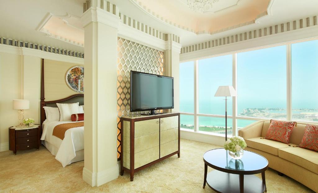 يقع في قلب كورنيش أبوظبي الحيوي، ويتميز ذه سانت ريجيس أبو ظبي بالضيافة العربية الأصيلة مع أكثر من مائة عام من تقاليد سانت ريجيس الخاصة، كما يبعد هذا الفندق مسافة 5 دقائق بالسيارة من مارينا مول و7 دقائق بالسيارة من مول مركز التجارة العالمي المتطور و15 دقيقة بالسيارة من مسجد الشيخ زايد الشهير. تتميز كل غرفة من غرف الفندق الـ 283 والأجنحة المميزة بإطلالة رائعة على كورنيش أبوظبي الجذاب، ويثير جناح أبوظبي الذي يقع على جسر مرتفع بين برجي نيشن تاورز الضيوف بإطلالة مذهلة على نطاق 360 درجة، كما تتوفر خدمة الخادم الشخصي الفاخرة من سانت ريجيس مجانًا لكل ضيف في الفندق. يمكنكم تذوق أفضل النكهات من المنطقة وتجربة أسلوب جديد للمأكولات العالمية في The Terrace on the Corniche، ويقدم Villa Toscana مأكولات ريفية تقليدية وإيطالية أصلية من توسكانا، كما يوفر بار سانت ريجيس أجواء حيوية مثالية بعد يوم حافل بالنشاط، وتعتبر استراحة Azura Panoramic المكان الرائع الوحيد لتناول الطعام في الخارج والتي توفر إطلالة على الخليج العربي المتلألئ وكورنيش أبو ظبي، فيما يقدم Cabana Beach Bar & Grill قائمة لذيذة من السلطات المشوية والبرغر اللذيذ والبانيني الطازج طوال اليوم مع الكوكتيلات المنعشة. يمكن الوصول إلى نيشن ريفيرا بيتش كلوب عبر ممر سفلي رخامي خاص ومكيف يمتد تحت الكورنيش، ويتميز نيشن ريفيرا بشاطئ خاص بطول 200 متر وكابانات منعزلة ومسبح واسع لا متناهي مع حدائق وبار مسبح عائم، فضلًا عن مرافق اللياقة البدنية الحصرية، فيما تم تصميم نادي Treasure Island للأطفال على هيئة سفينة قراصنة مرحة ويوفر منطقة آمنة وممتعة للأطفال، مع أنشطة داخلية وخارجية تحت الإشراف الكامل بما في ذلك مسبح ومنزلقة مياه. يمثل سبا ريميدي خبرة روحية وملاذ للضيوف. يقع مول أبو ظبي على بعد 10 دقائق بالسيارة من ذه سانت ريجيس أبو ظبي، ويوفر الفندق خدمة الواي فاي مجانًا في جميع المناطق، بالإضافة إلى خدمة صف السيارات المجانية.